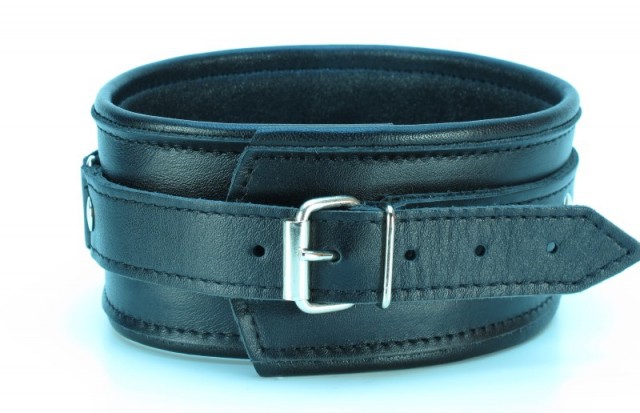 Выпол­нен ошей­ник из натуральной кожи черного цвета, декорирован металлическими клёпками. Классический дизайн ошейника великолепно смотрится, как на нежной женской шейке, так и на сильной мужской!